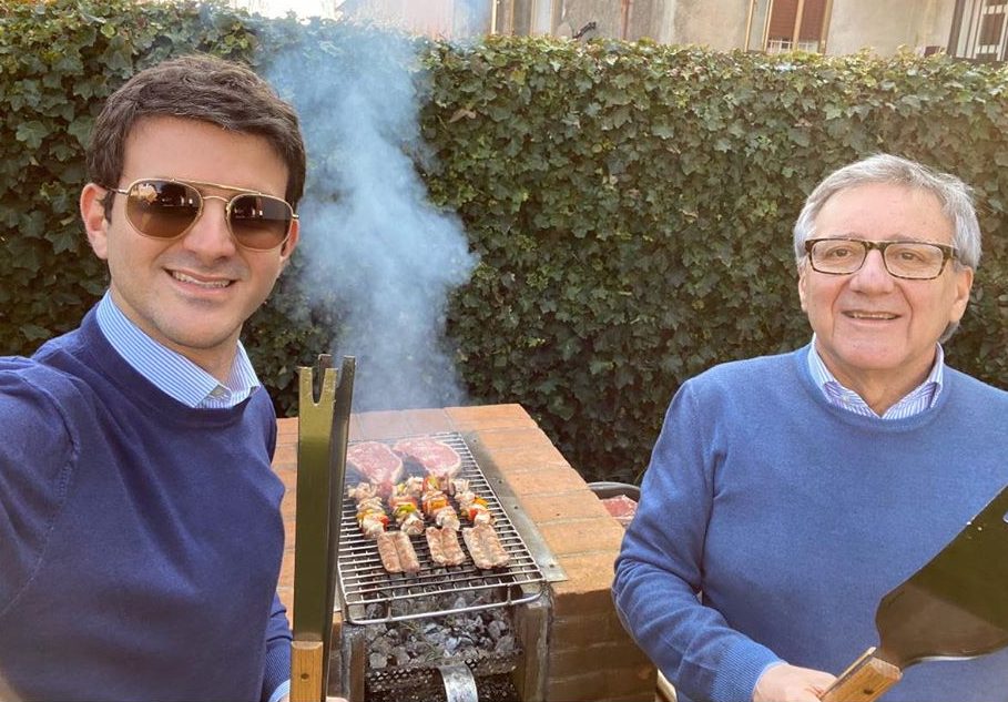 NON SOLO LAVORO SCI E GOLF PER ALESSANDRO RIELLO EX PRESIDENTE NAZIONALE E VERONESE DEI GIOVANI INDUSTRIALI. ANCHE LUI IMMORTALATO CON IL FIGLIO AD ARMEGGIARE CON UN TENTATIVO ANDATO A BUON FINE DI REALIZZARE UN OTTIMA GRIGLIATA IN GIARDINO. NON SI SA SE A VERONA O A CORTINA.