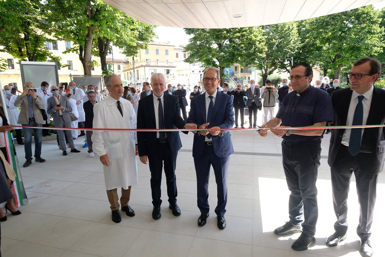 Il nuovo edificio è il primo step di un progetto di riqualificazione complessiva dell’Ospedale di Negrar che ha come obiettivo l’adeguamento della struttura all’esponenziale sviluppo medico-scientifico e tecnologico che il nosocomio ha avuto negli ultimi decenni, anche dal punto di vista dell’immagine. I lavori di riqualificazione continueranno negli anni con l’ampliamento del Pronto Soccorso; un nuovo reparto di Oncologia e un Centro di Ricerca per le Malattie Infettive e Tropicali. “Davanti a noi abbiamo una struttura bella e moderna che cambierà profondamente l’organizzazione e i percorsi all’interno dell’ospedale – ha detto il presidente dell’Ospedale di Negrar, fratel Gedovar Nazzari – E la bellezza, in questo caso, non è solo una questione esteriore. Io penso che in un’opera come la nostra, che è nata dal Carisma di San Giovanni Calabria, la bellezza degli ambienti abbia un valore carismatico. La bellezza è il segno dell’attenzione, della cura e, perché no, dell’amore che la nostra mission ci chiede di dedicare ad ogni malato, perché ogni malato con le sue sofferenze è una perla preziosa agli occhi di Dio”. La centralità della persona è essenziale, per questo occorre garantire innovazione, aggiornamento, strumentazioni all’avanguardia, semplicità di accesso”, ha sottolineato l’amministratore delegato, Mario Piccinini. “Continuiamo il nostro lavoro con una struttura ‘green’, più digitale, con spazi grandi più a misura delle esigenze dei pazienti. La nostra formula ‘no profit’ di totale investimento degli utili direttamente nell’ospedale, vuole essere la garanzia di come si può continuamente crescere puntando solo al benessere dei pazienti”. E ha aggiunto: “Abbiamo pensato questa struttura quattro anni fa prima della pandemia, ma risponde alla logica che il paziente deve entrare in ospedale solo quando serve. Il tema della medicina dei prossimi anni sarà l’antibiotico resistenza, quindi questa nuova struttura oltre a facilitare l’accesso del paziente in ospedale ha anche l’obiettivo di proteggerlo da virus e batteri”.