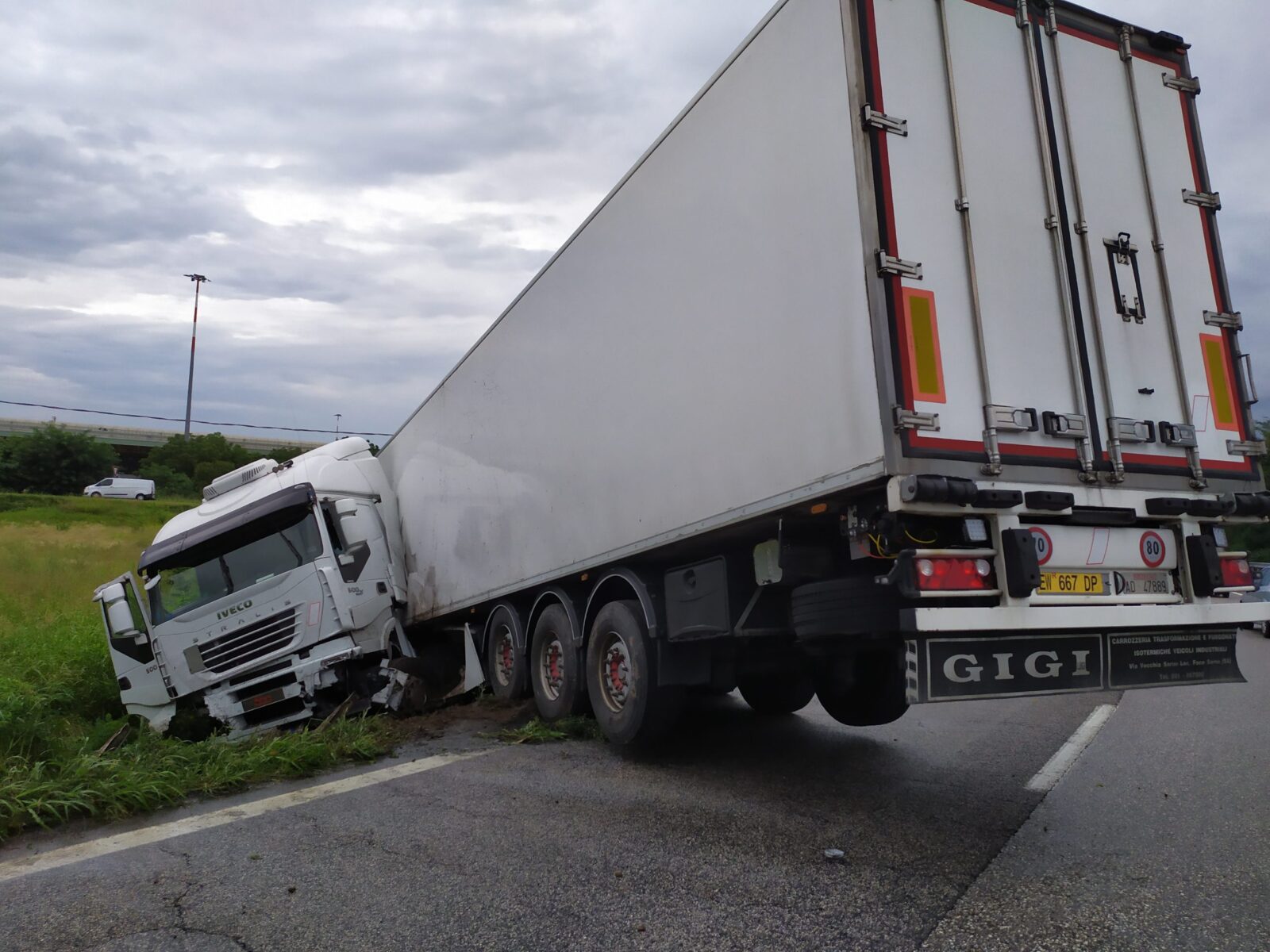 Dalle 16 di oggi la Tangenziale Sud è bloccata, all’altezza dello svincolo per il Centro Agroalimentare, a causa della fuoriuscita autonoma di un autoarticolato trattore stradale Iveco con rimorchio.