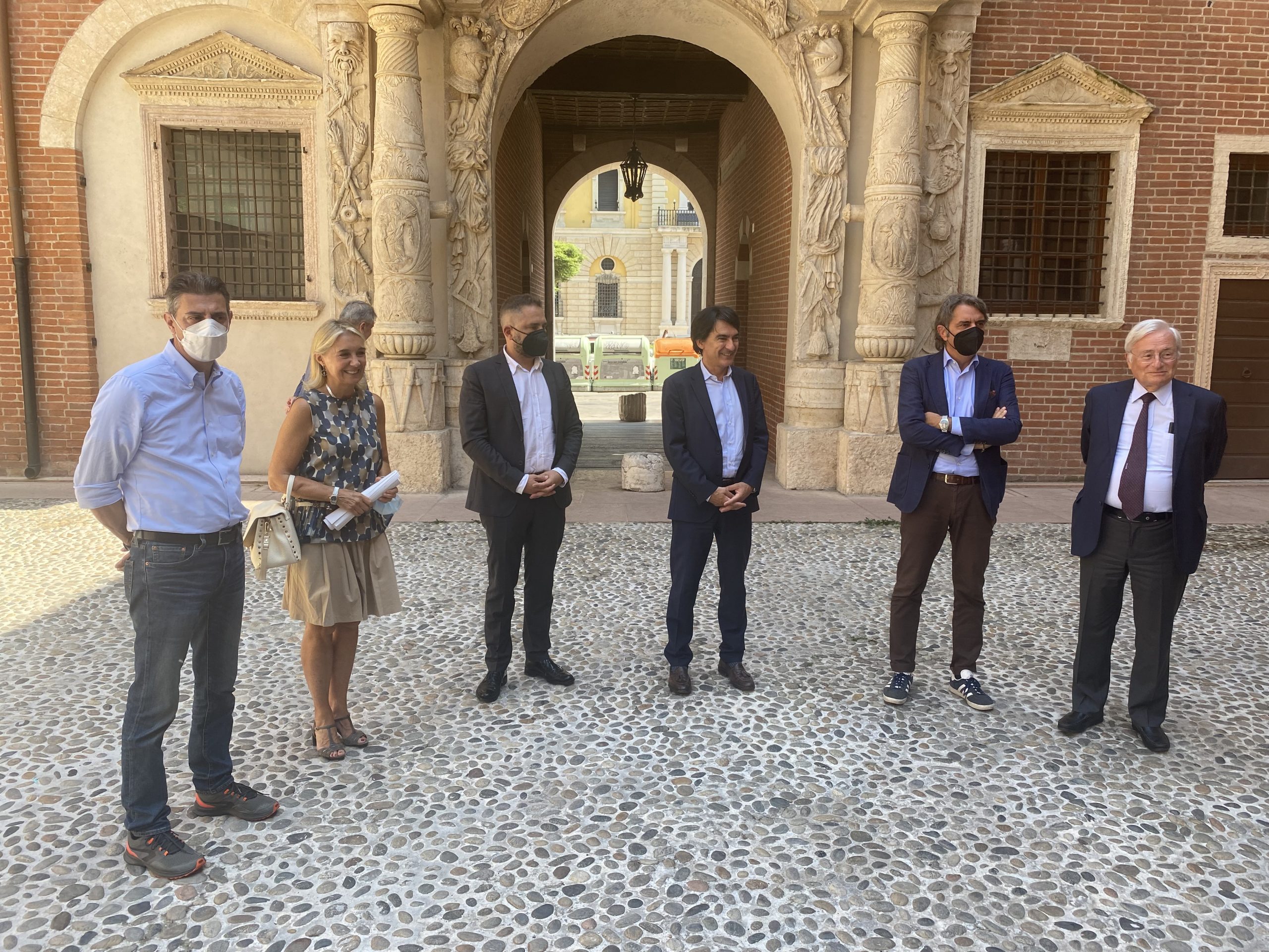 I risultati del progetto ‘Sentinella’ di prevenzione Covid sono stati illustrati questa mattina dal sindaco Federico Sborina. Presenti l’assessore ai Servizi sociali Daniela Maellare, la professoressa Evelina Tacconelli direttrice dell’Unità operativa Malattie infettive dell’Azienda ospedaliera universitaria di Verona, Maurizio Cattaneo, direttore del quotidiano L’Arena e l’avvocato Fabio Dal Seno presidente della Fondazione Comunità Veronese. Inoltre, la Pro Rettrice Donata Gottardi e la dottoressa Matilde Carlucci direttore Sanitario dell’Azienda Ospedaliera Universitaria Integrata di Verona.