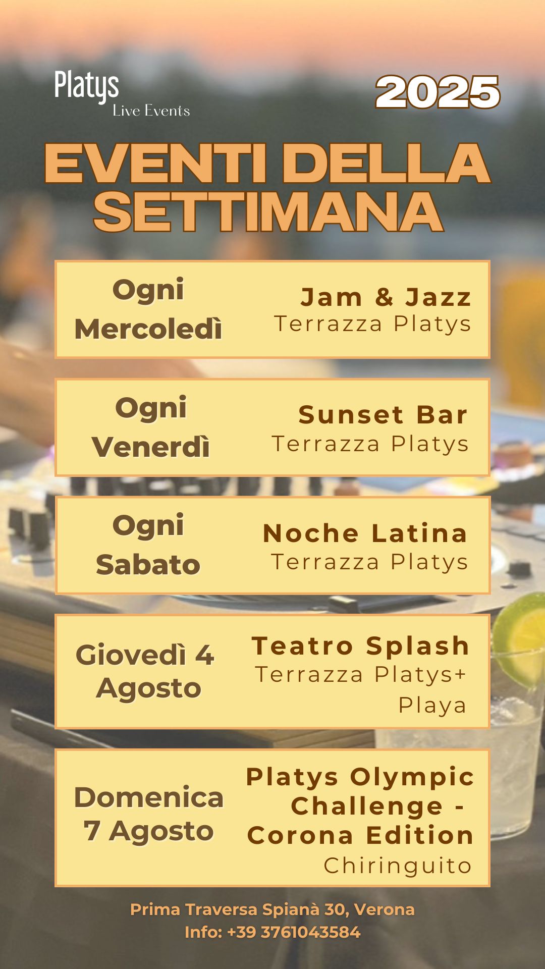 Un settembre che parte col botto al Platys, con un calendario ricco di musica, spettacolo e divertimento. Cinque appuntamenti che mixano generi diversi e atmosfere uniche, per una settimana tutta da vivere.