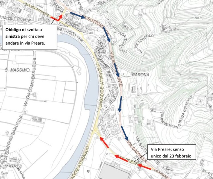 Non sarà invece consentito il percorso inverso: fino al termine dei lavori, chi proviene da lungadige Attiraglio non potrà accedere a via Preare in direzione della città.