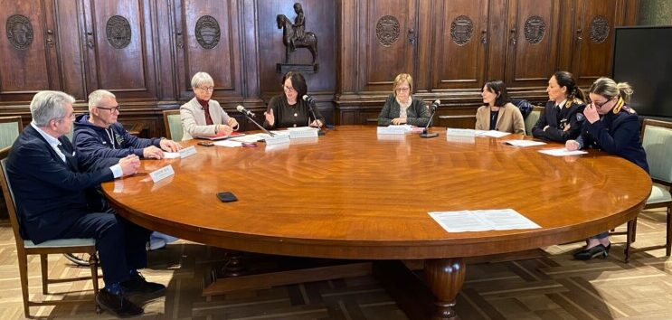 Presenti alla conferenza il Questore Rosaria Amato, le assessore Elisa La Paglia e Stefania Zivelonghi, la consigliera delegata Annamaria Molino, il presidente di USacli Verona Giuseppe Biasi e Roberto Zecchinato per Olympic Basket.